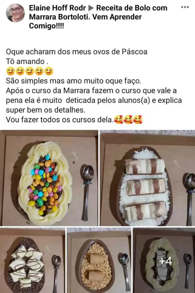 Ao longo dos anos, ela não só criou ovos de Páscoa artesanais que se tornaram um sucesso de vendas, mas também compartilhou seu conhecimento, ajudando a transformar a vida de outras pessoas. Seus cursos online já impactaram mais de 400 mil alunas ao redor do mundo.
